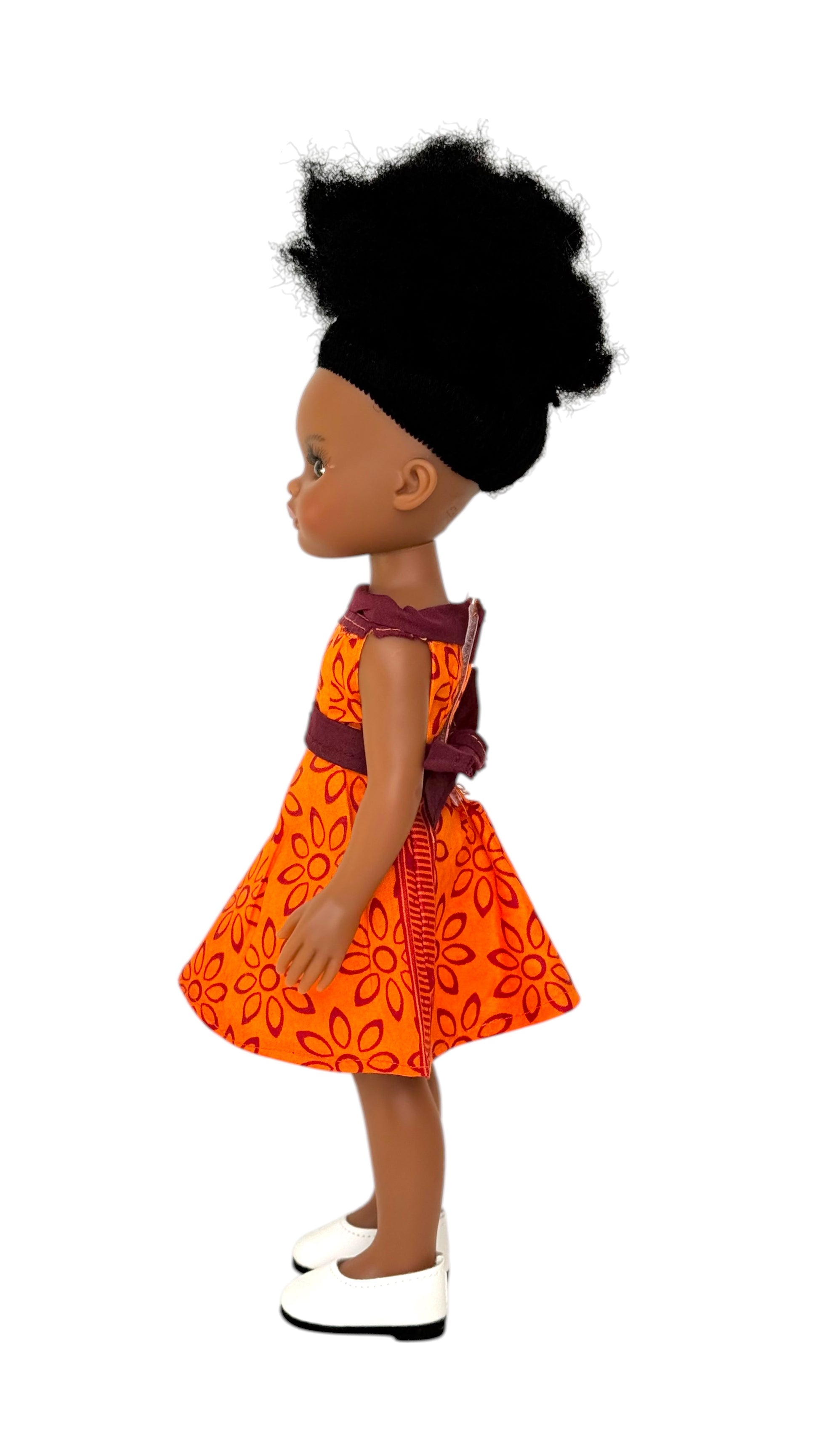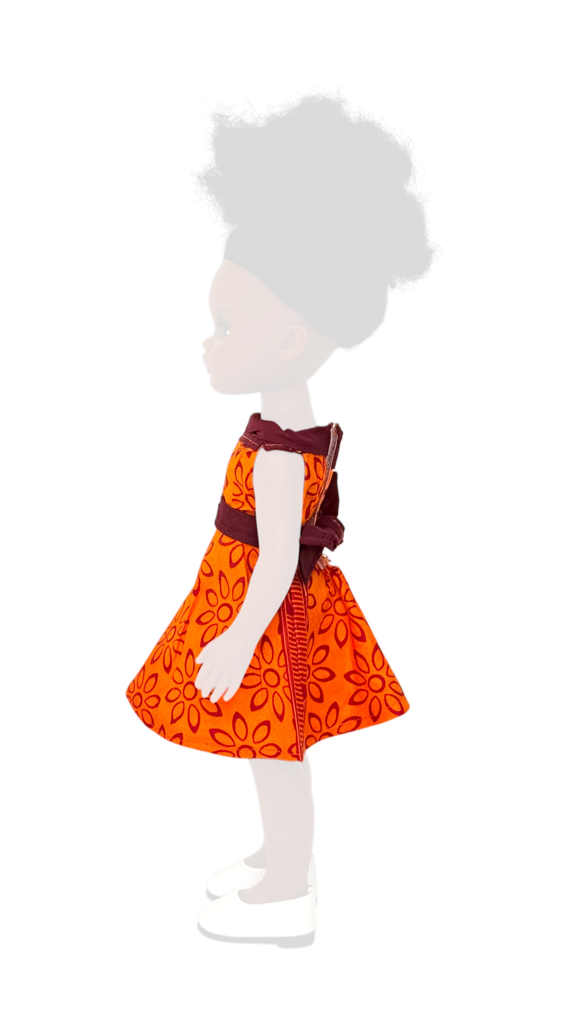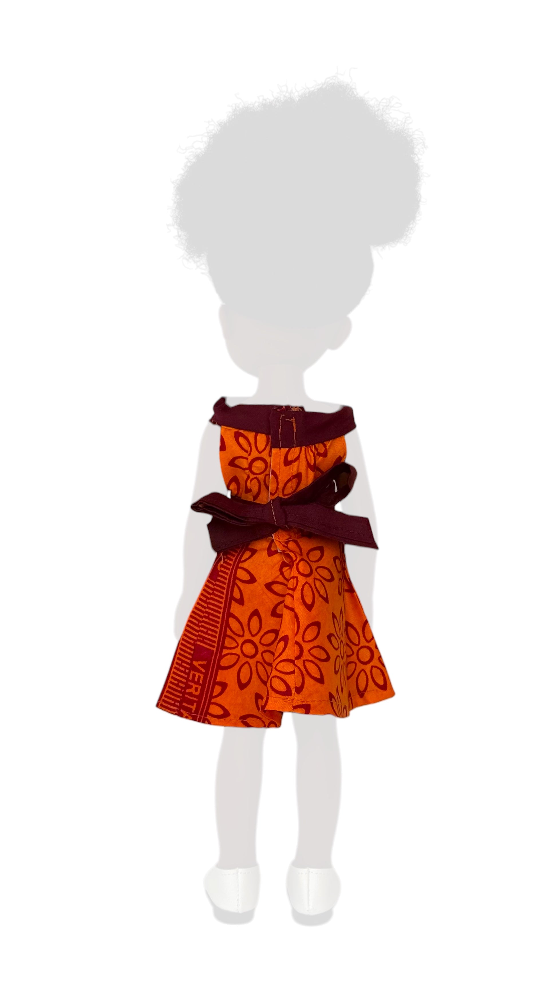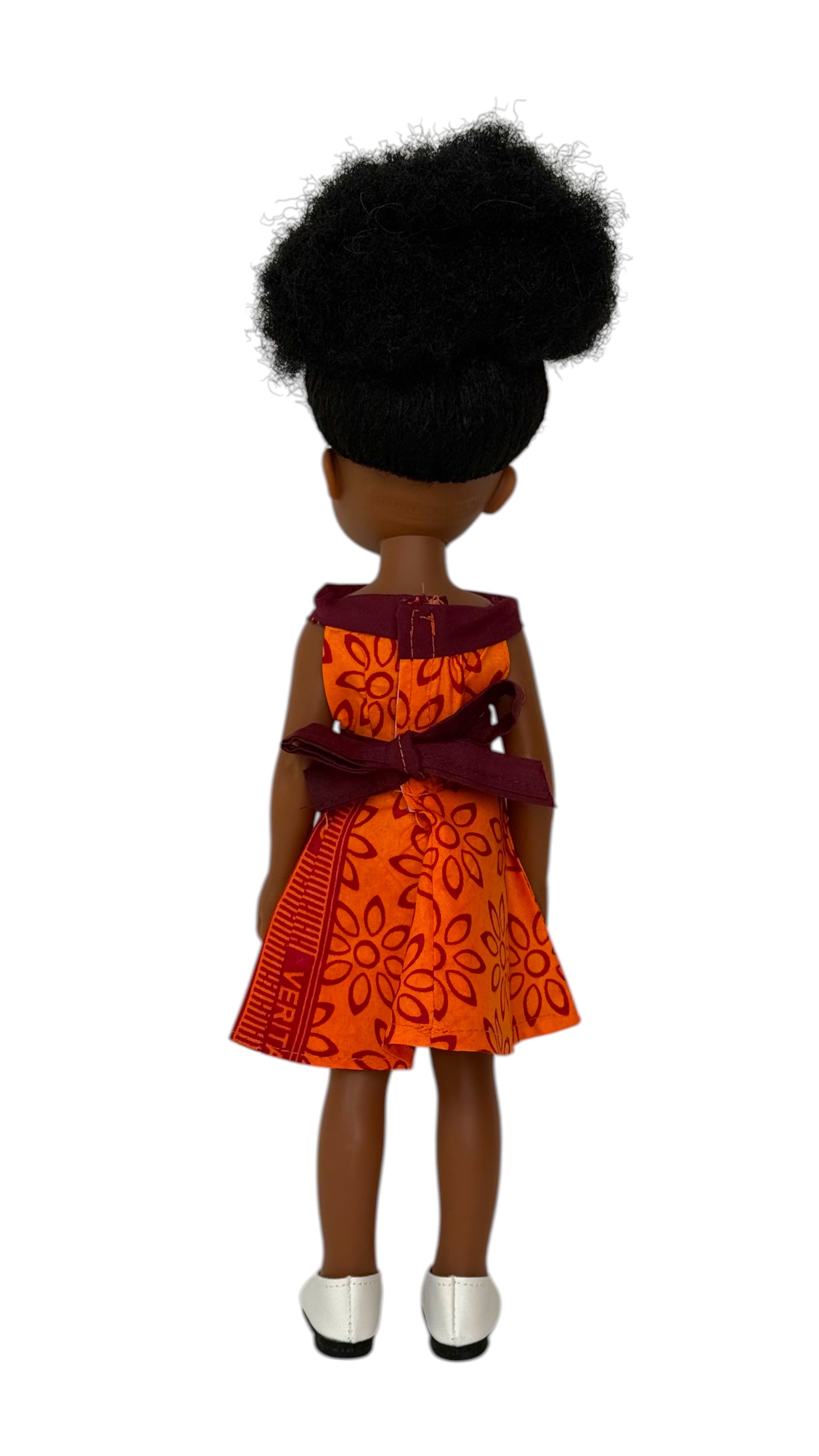 Brighten up your Sibahle Doll’s wardrobe with the Orange Crush Doll Dress—a sleek, simple, and striking outfit made to stand out. Featuring a bold Afro-inspired print in vibrant orange tones, this dress adds energy and style to every play session.